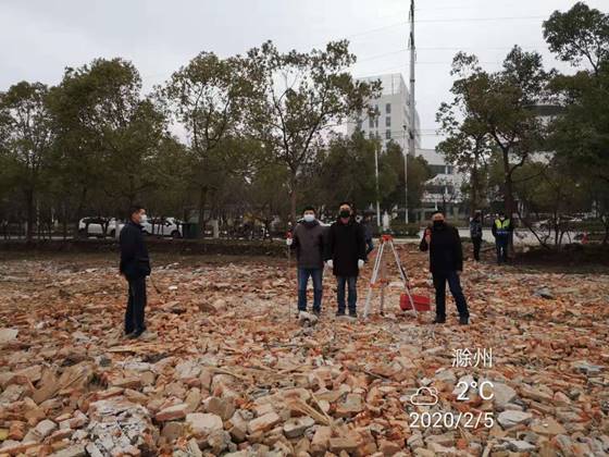 2月3日,我院再次接到市重點工程管理處的緊急任務,由我院測量隊承擔市新型冠狀病毒肺炎定點收治備用醫(yī)院三期場地的地形圖及土方測繪工作。疫情就是命令,測量隊隊員們聞令而動,紛紛請戰(zhàn)。由副隊長蔣蔚、主任工程師梁發(fā)軍帶領5名隊員,帶著測繪工具,不顧場地泥濘,于2月4日上午八點半準時到達現(xiàn)場,立即開展工作,并于當日完成了測量數(shù)據(jù)采集、傳輸、整理和制圖工作,為備用醫(yī)院三期建設提供了詳實的第一手基礎資料。